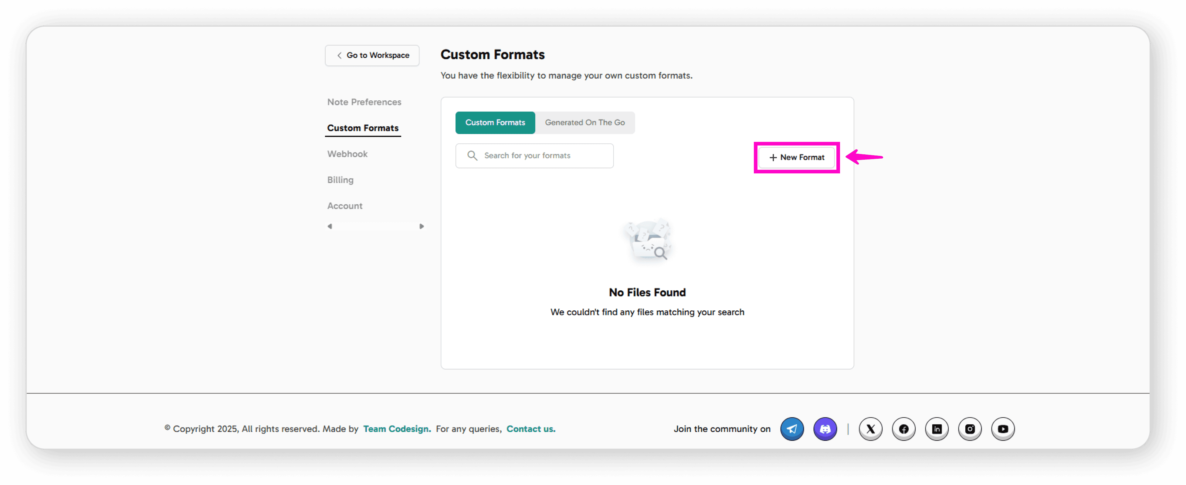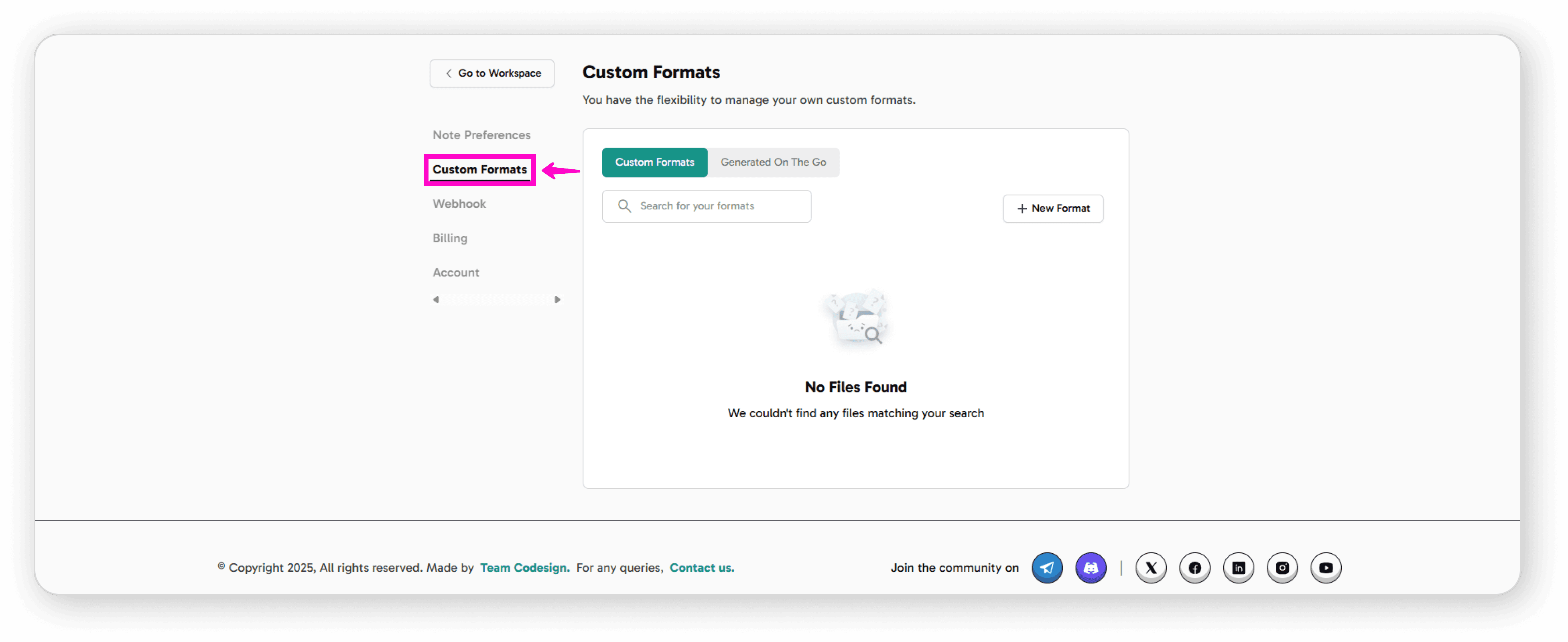 Click on "Custom Format" from your dashboard