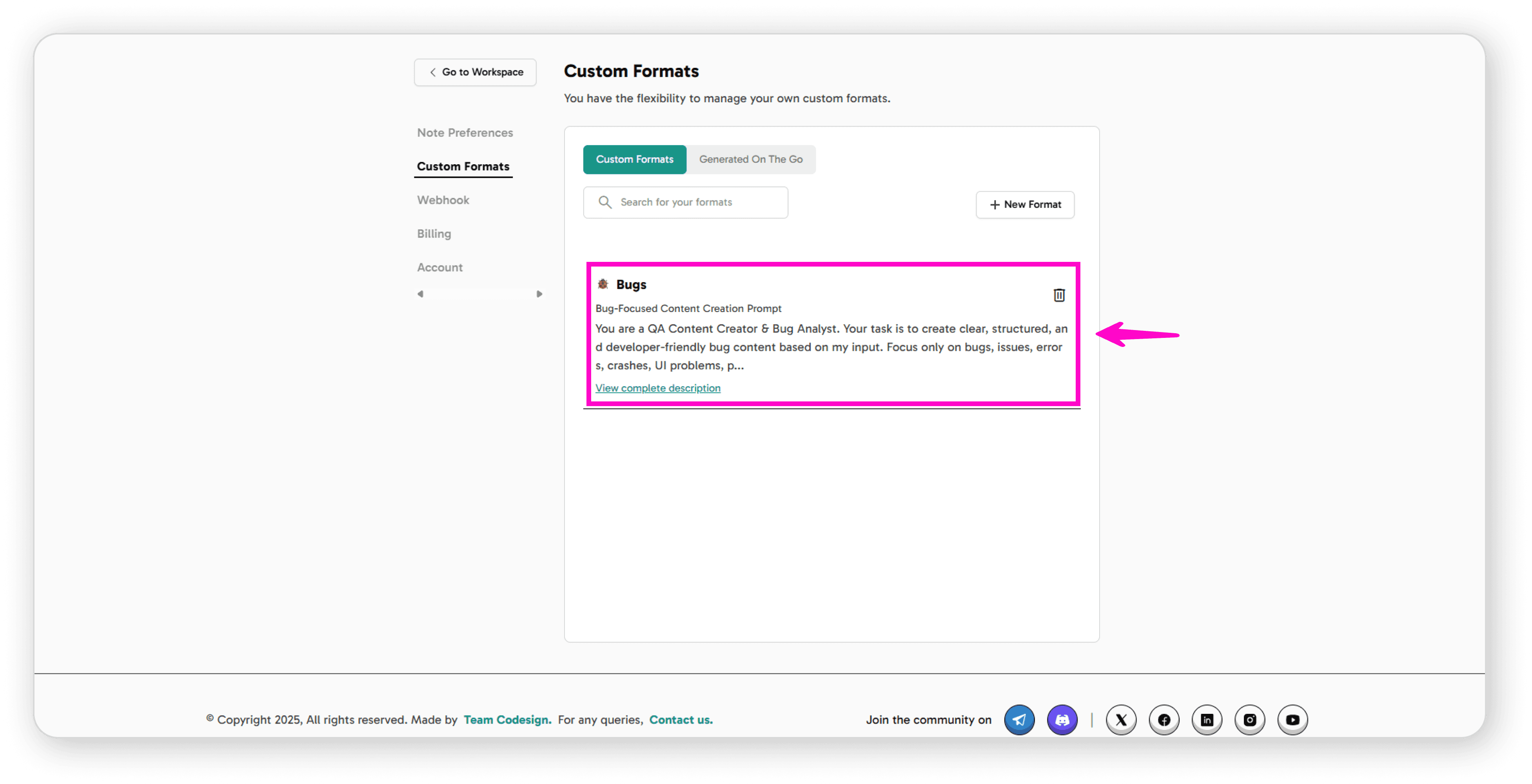 Once created, you can select your custom format whenever you're recording or generating notes, allowing you to maintain consistent formatting that works best for your workflow.