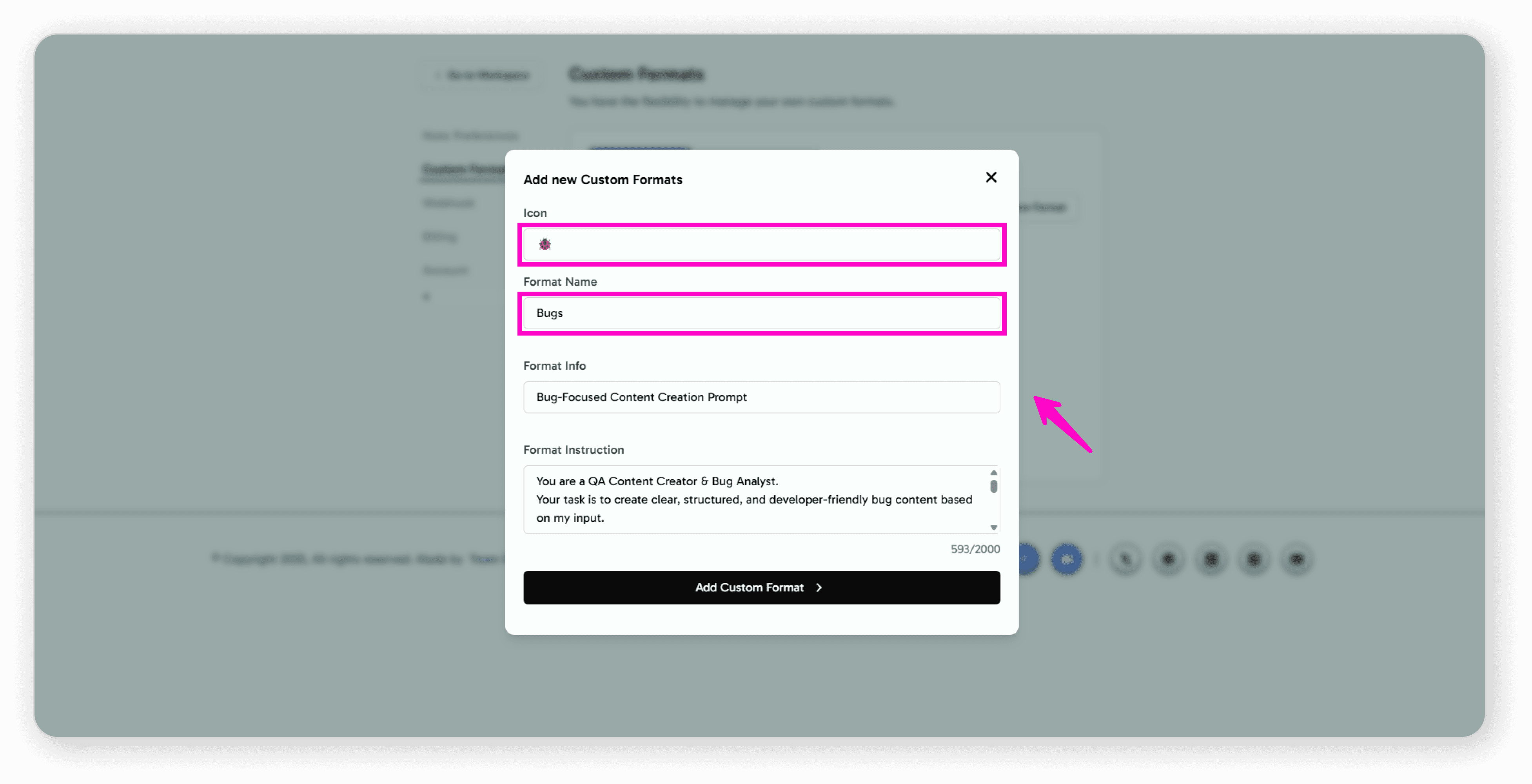 Click on "Add Custom Format"