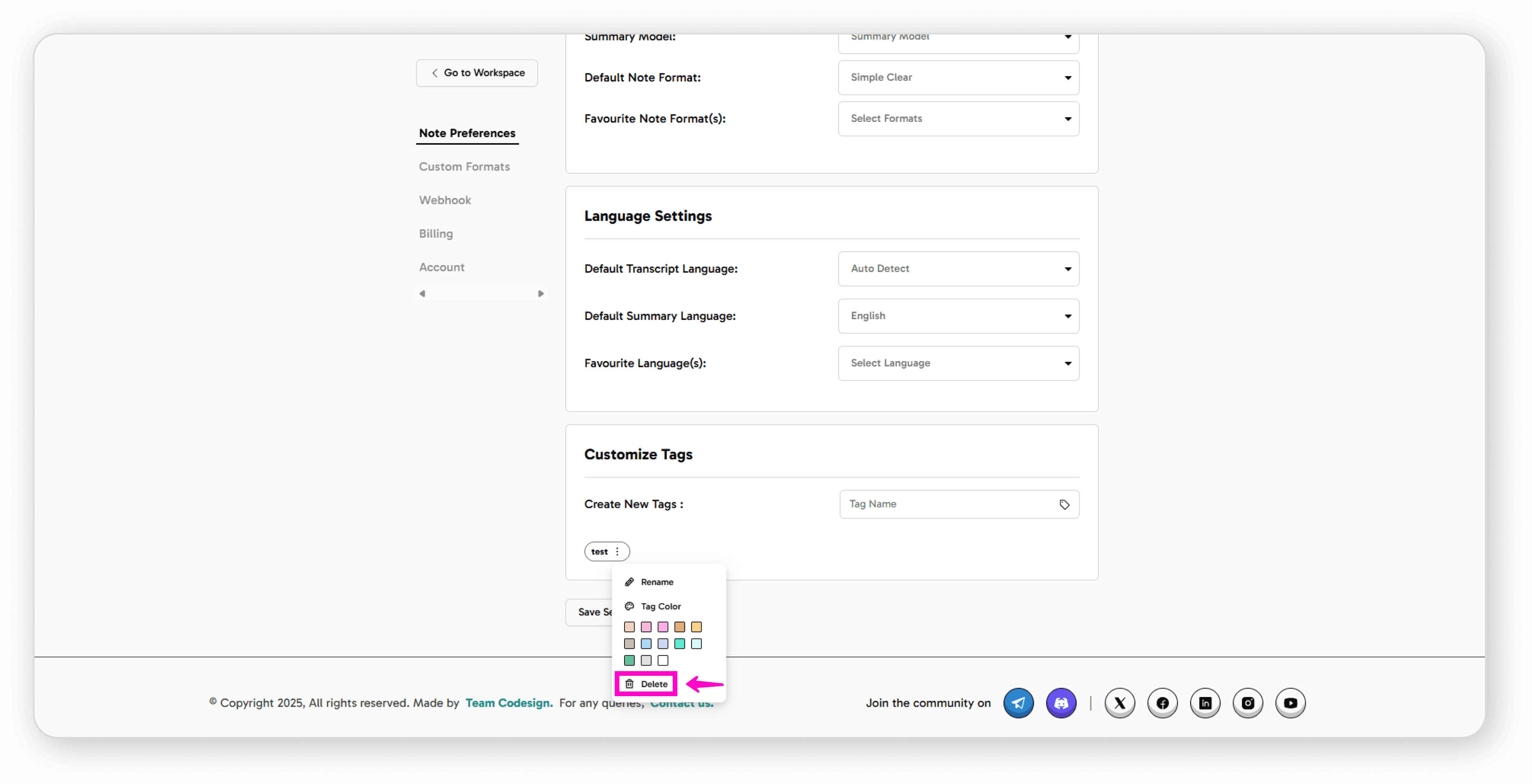 Delete: Click the delete icon, then confirm to remove the tag