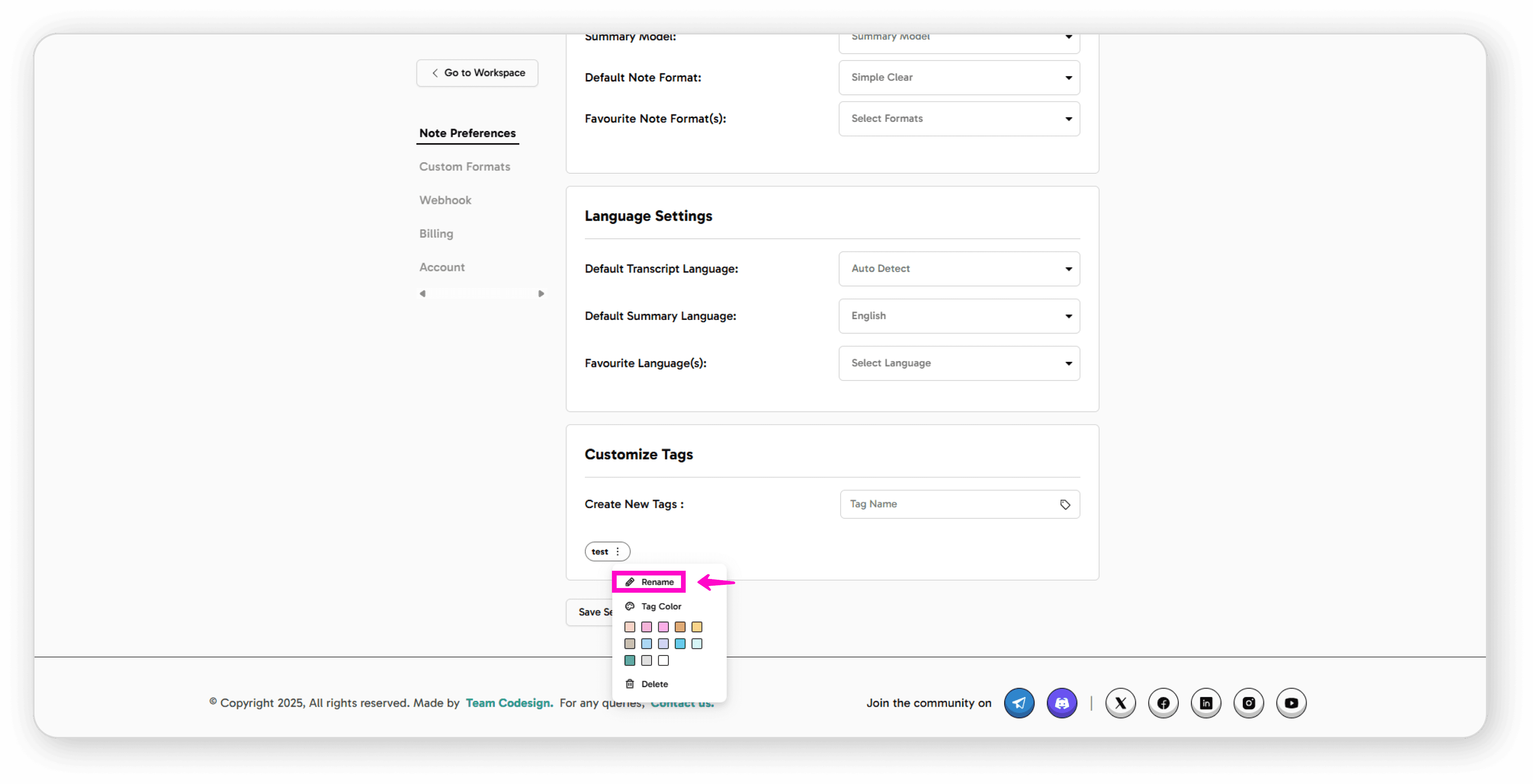 Rename: Click the pencil icon to change the tag name